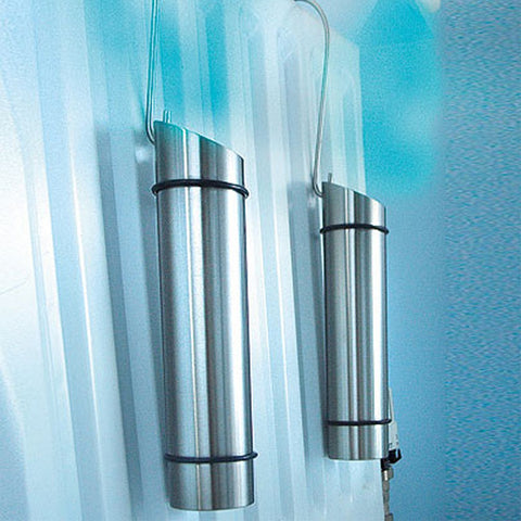 Two stainless steel cylinders that hang over warm radiators when filled with water. The resulting evaporation increases the humidity in the air which can ease dry eye symptoms.