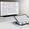 Its HD camera captures a wider field of view than is displayed, enabling the user to scroll across a line of text without moving the magnifier. HDMI & USB connectivity allows the user to connect the unit to either a PC or TV screen allowing for an even more pleasant reading experience.