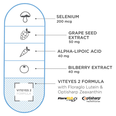 Blending the AREDS2 formulation which underpins the Viteyes range with added natural anti-oxidants such as bilberry and grape seed oil, alpha lipoic acid and selenium.