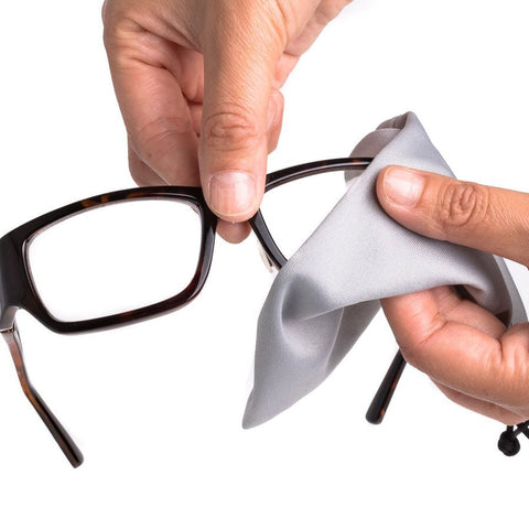 The best way is to dampen part of a dust free microfibre cloth with a little water and then use a gentle, circular motion to clean the lenses. If there is excess dirt use a little soapy water. Then dry with a rest of the microfibre cloth.