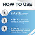 Tear off a vial from the pack, Bend your head backwards, pull the lower eyelid downwards with your forefinger to gently squeeze the vial and let 1-2 drops fall into the eye. Alternatively, insert the drop into the contact lens before inserting into the eye.